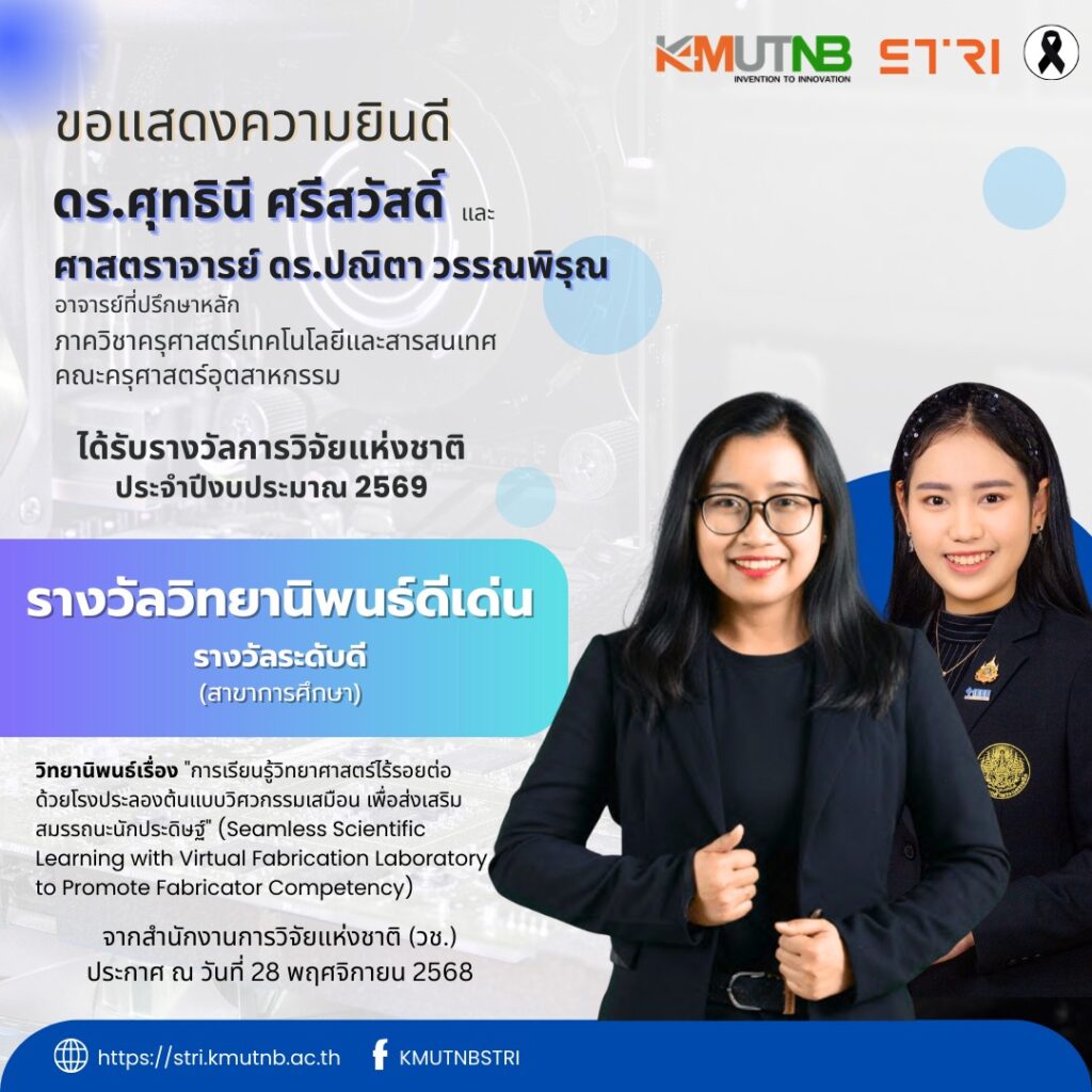 เรื่อง รางวัลการวิจัยแห่งชาติ : รางวัลวิทยานิพนธ์ ประจำปีงบประมาณ 2569